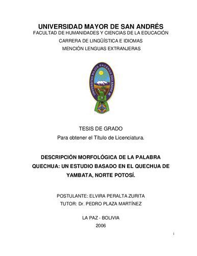 | عنوان اصلی | Descripción morfológica de la palabra quechua: un estudio basado en el quechua de Yambata, Norte Potosí |