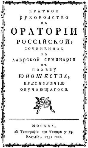 | عنوان اصلی | Краткое руководство к Оратории российской, сочиненное в Лаврской семинарии в пользу юношества, красноречию обучающегося |