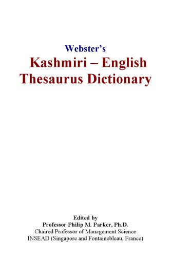 اگر در حال یادگیری زبان کشمیری هستید، این کتاب برای شما ساخته نشده است و نباید آن را خریداری کنید. این برای افراد مسلط به زبان مادری کشمیری ایجاد شده است که از قبل معنی کامل کلمات کشمیری را می دانند، اما باید بیاموزند که چگونه یک ترجمه انگلیسی یک کلمه کشمیری ممکن است معانی مبهم در زبان انگلیسی داشته باشد. این برای آموزش دوزبانه برای خواننده غیر انگلیسی طراحی شده است که می خواهد نمرات آزمون زبان انگلیسی را که مترادف های انگلیسی را پوشش می دهد بهبود بخشد. مترادف ها ممکن است هیچ ارتباطی با یک کلمه ترجمه نداشته باشند (مثلاً “عشق” می تواند هم نشان دهنده یک احساس و هم نمره صفر در تنیس باشد؛ صفر، در حالی که مترادف عشق است، احتمالاً ترجمه بدی به عنوان اصلی کشمیری است). این یک اصطلاحنامه انگلیسی معمولی است، مانند Roget’s، اما مدخل ها بر اساس حروف الفبا با استفاده از سر واژه های کشمیری مرتب شده اند. نمی توان از آن برای ترجمه بین دو زبان استفاده کرد، اما ممکن است به فردی مسلط به زبان کشمیری که در حال یادگیری مقدماتی انگلیسی است کمک کند تا ابهامات زبان انگلیسی و واژگان آن را بیاموزد. مترادف های هر سر واژه ترجمه نیستند. کلمات کشمیری برای تسهیل کلمات مترادف انگلیسی “به دنبال” استفاده می شود. قبل از خرید، مربیان و دانش‌آموزان باید محتویات این فرم منحصربفرد اصطلاحنامه را که برای مشاهده در کتاب‌های Google رایگان است، یا با استفاده از عملکرد “نگاه به داخل” آمازون بررسی کنند. ترجمه‌های مورد استفاده در حوزه عمومی به فرهنگ لغت آنلاین وبستر ارائه شده است و از داوطلبان نامشخص، سخنرانان بومی، مترجمان حرفه‌ای، زبان‌شناسان حوزه و دانشگاهیان (نه توسط ویراستار اصطلاحنامه) نشأت گرفته است. اگر می‌خواهید برای هر ترجمه‌ای نقل‌قول کنید، پیشنهاد بدهید، اشتباهات را یادداشت کنید، یا به هر طریق دیگری مشارکت کنید، لطفاً به فیلیپ ام. پارکر در INSEAD ایمیل بزنید، که به‌طور دوره‌ای این مجموعه را به‌روزرسانی می‌کند. حق تکثیر به مربیان اعطا می شود.