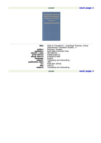 عنوان اصلی What Is Translation?: Centrifugal Theories, Critical Interventions (Translation Studies, 4)