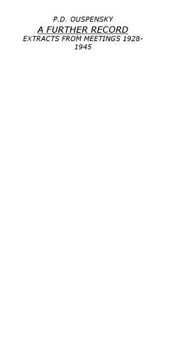 عنوان اصلی A Further Record: Extracts from Meetings 1928-1945