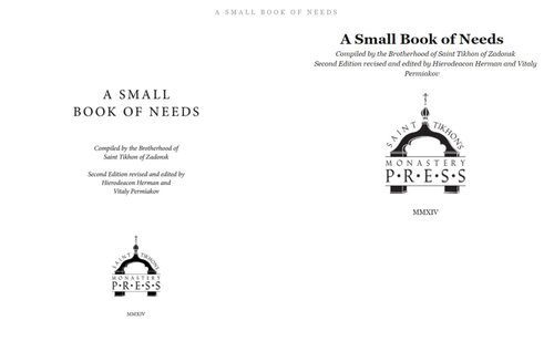 این تجدید چاپ تجدید نظر شده نسخه قبلی ما نسخه مختصری از مجموعه 4 جلدی Great Book of Needs است که به اندازه کافی کوچک است تا در جیب شما قرار گیرد. این شامل بسیاری از دعاهای ضروری است که اغلب در خارج از ساختمان کلیسا انجام می شود. این نسخه شامل یک تایپ خواناتر با دو نشانک است. بخش های کتاب عبارتند از: قسمت 1: زایمان قسمت 2: دعا برای بیمار قسمت 3: اعتراف و توبه قسمت 4: دعاهای هنگام مرگ قسمت 5: سال کلیسا قسمت 6: برکات مختلف قسمت 7: دعا در صفحه اصلی قسمت 8: کشاورزی و دامپروری قسمت 9: انسان و طبیعت