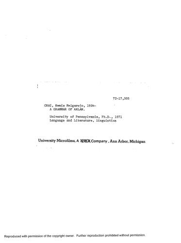 عنوان اصلی A Grammar of Aklan