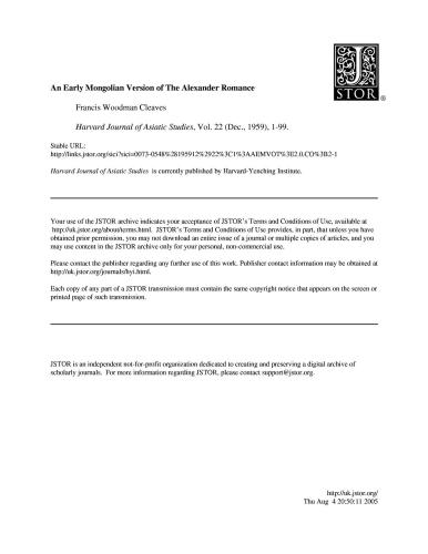 | عنوان اصلی | An early Mongolian version of the Alexander romance |