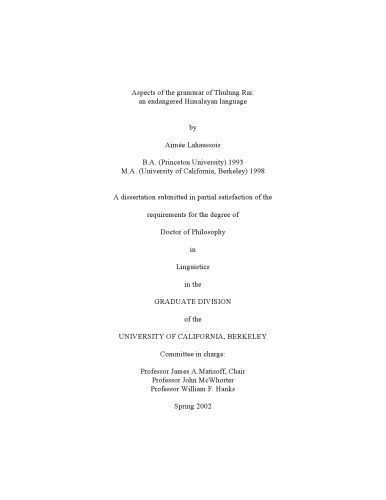خرید و دانلود نسخه کامل کتاب Aspects of the grammar of Thulung Rai: an endangered Himalayan language [PhD thesis]