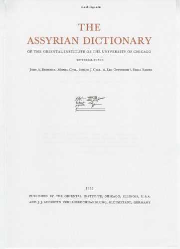 عنوان اصلی Assyrian Dictionary of the Oriental Institute of University of Chicago