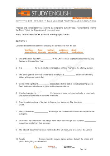 عنوان اصلی Australia Network. Study English IELTS Preparation. (Episode 17. Talking about Festivals and Celebrations)