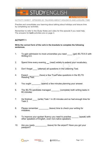 عنوان اصلی Australia Network. Study English IELTS Preparation. (Episode 22.Talking about Holidays and Leisure Time)