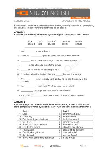 عنوان اصلی Australia Network. Study English IELTS Preparation. (Episode 26. Giving Advice)
