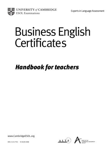 | عنوان اصلی | Business English Certificates Handbook for Teachers BEC Preliminary, Vantage, Higher 2008 |