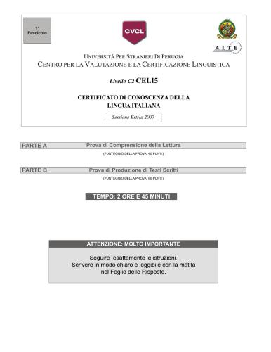 مواد جلسه امتحان ژوئن 2007 برای گواهینامه بین المللی دانش زبان ایتالیایی CELI (سطح C2)، دانشگاه پروجا، ایتالیا.