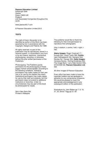 ناشر اجازه فتوکپی از آن صفحات را طبق شرایط زیر می دهد. خریداران انفرادی ممکن است برای استفاده خود یا کلاس هایی که تدریس می کنند از آن کپی تهیه کنند. خریداران مؤسسهای میتوانند برای استفاده کارکنان و دانشجویان خود کپی تهیه کنند، اما این مجوز به مؤسسات یا شعبههای دیگر تعمیم نمییابد. تحت هیچ شرایطی نمی توان بخشی از این کتاب را برای فروش مجدد کپی کرد.