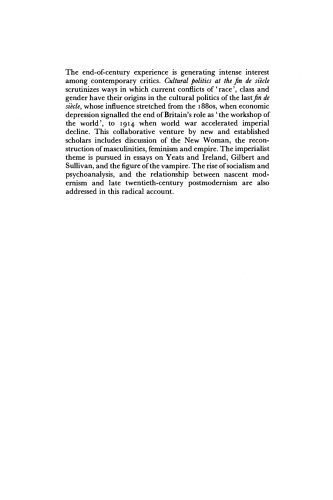 تجربه پایان قرن علاقه شدیدی در میان منتقدان معاصر ایجاد می کند. این مجموعه مقالات به بررسی روش‌هایی می‌پردازد که در آن درگیری‌های نژادی، طبقاتی و جنسیتی منشأ خود را در سیاست‌های فرهنگی آخرین fin de siècle دارند. ساخت مردانگی، فمینیسم و ​​امپراتوری، ییتس و ایرلند، اپراهای گیلبرت و سالیوان، سوسیالیسم، روانکاوی، و رابطه بین مدرنیسم نوپا و پست مدرنیسم، همگی در این سرمایه‌گذاری رادیکال مشارکتی مطرح می‌شوند.