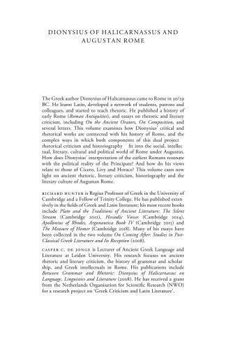 عنوان اصلی Dionysius of Halicarnassus and Augustan Rome: rhetoric, criticism and historiography