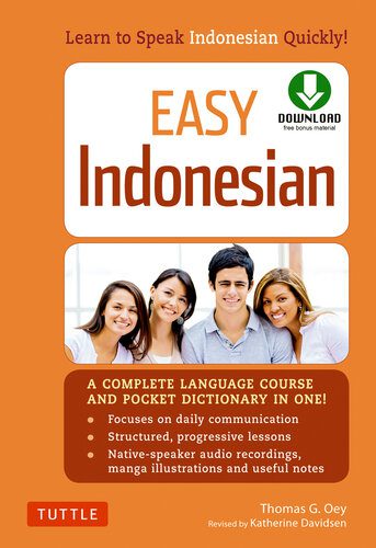اندونزی مقصد جدید آسیایی است، کشوری که در آن گفتگوهای پر جنب و جوش، شوخ طبعی خوب و صمیمی است. تعامل انسان بخش جدایی ناپذیر زندگی روزمره است. علاوه بر این، زبان اندونزیایی به طور گسترده به عنوان یکی از ساده ترین زبان های آسیایی برای غربی ها در نظر گرفته می شود. Easy Indonesian زبان و فرهنگ اندونزیایی را زنده می‌کند و تمام اصول اولیه مورد نیاز برای شروع سریع صحبت به اندونزیایی را در اختیار شما قرار می‌دهد. فصل‌های آغازین، ملزومات تلفظ و ساخت جملات را معرفی می‌کنند، با هر فصل بعدی شما را در ایجاد تدریجی دانش برای موقعیت‌ها و فعالیت‌های خاص، مانند ایجاد آشنایی‌های جدید، رفتن به خرید، مسافرت و بسیاری موارد دیگر، به جلو می‌برد.