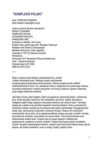عنوان اصلی Konwicki Tadeusz, Kompleks Polski