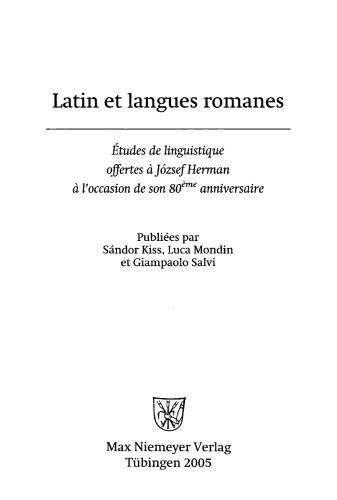 زبانهای لاتین و عاشقانه: مطالعات زبانی به مناسبت هشتادمین سالگرد تولد خود به ژوزف هرمان ارائه شد |