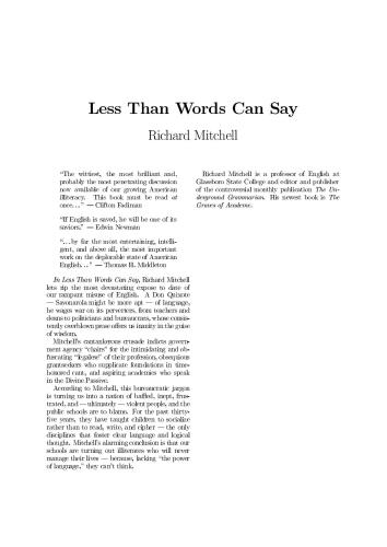 بیست و چند سال پیش، ریچارد میچل، استاد کالج ایالتی گلاسبورو در نیوجرسی، دست به کار شد: نجات زبان انگلیسی و ذهن کسانی که توسط آن به دنیا وابسته اند. میچل با پوشیدن شنل و نقاب به عنوان «گرامر زیرزمینی»، در خبرنامهاش علیه چرندیاتی که گفته میشود، نوشته میشود، و در واقع توسط مؤسسه آموزشی تشویق میشود، مخالفت کرد. (آنطور که او می گوید: «یک چیز منجر به دیگری شد، یک صفحه اول در وال استریت ژورنال، یک طرفدار در Time، و موارد دیگر. قبل از آن. پایان یافت، گرامر زیرزمینی در دنیای چاپ رومیزی، اولین نشریه ای شد که در همه قاره ها به جز قطب جنوب مشترکین داشت. کارهای مکتوب مربیان حرفه ای و دانش آموزان بیچاره آنها به زودی تبدیل به یک کار نجیبانه شد: تحقیق، از طریق شوخ طبعی و هوشمندی Þerce، در مورد “معنای مفید ما از “آموزش” چیست.” نتایج پرس و جوهای میچل به شرح زیر است. امروز مانند زمانی که Þrst بیان می کرد تحریک کننده بود. پروژه او توضیحی گویا از این است که چگونه از طریق نوشتن، فکر می کنیم و دانش می سازیم. مطمئناً جالب ترین سرگرم کننده است.