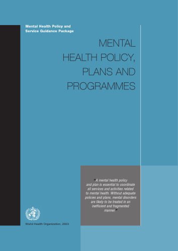 | عنوان اصلی | Mental Health Policy, Plans and Programmes (Mental Health Policy and Service Guidance Package) |