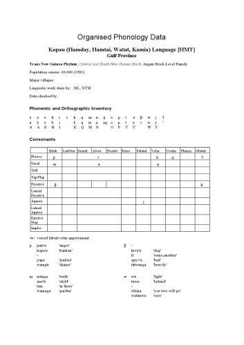 | عنوان اصلی | Organised Phonology Data: Kapau (Hamday, Hamtai, Watut, Kamia) Language [HMT], Gulf Province |