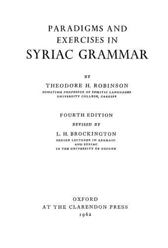 خرید و دانلود نسخه کامل کتاب Paradigms and exercises in SYRIAC GRAMMAR