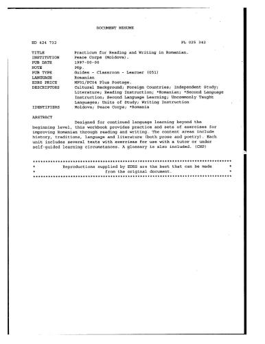 | عنوان اصلی | Peace Corps (Moldova). Practicum for Reading and Writing in Romanian |
