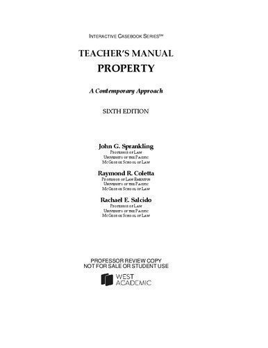 عنوان اصلی Property: A Contemporary Approach Casebook (Teacher’s Manual)