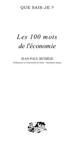 عنوان اصلی QUE SAIS-JE.Les cents mots de l’économie