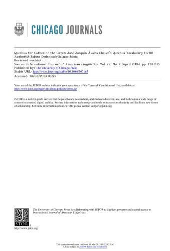 | عنوان اصلی | Quechua for Catherine the Great: José Joaquín Ávalos Chauca’s Quechua Vocabulary (1788) |