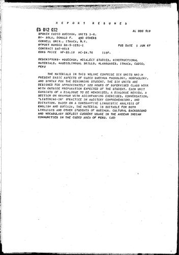 سطح پایه دوره کوزکو کوچوا. از مواد صوتی نیز در دسترس استفاده می کند. اگرچه کتاب می گوید “Primer libro” (“اولین کتاب”) هرگز کتاب دومی با سطح پیشرفته منتشر نشد.