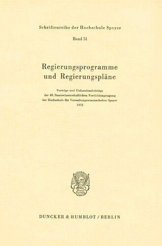 خرید و دانلود نسخه کامل کتاب Regierungsprogramme und Regierungspläne: Vorträge und Diskussionsbeiträge der 4. Staatswissenschaftlichen Fortbildungstagung der Hochschule für Verwaltungswissenschaften Speyer 1972