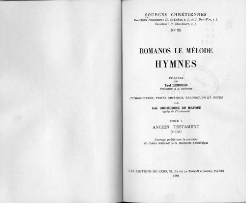 عنوان اصلی Romanos le Mélode : Hymnes I-VIII, tome I