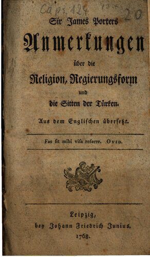 | عنوان اصلی | Sir James Porters Anmerkungen über die Religion, Regierungsform und die Sitten der Türken |