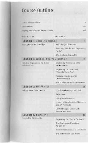 این مقدمه ساده و موثر تاگالوگ همه چیز را به شما یاد می دهد شما باید به زبان تاگالوگ صحبت کنید، بفهمید، بخوانید و بنویسید. این برنامه هیچ پیشزمینهای در این زبان ندارد و هر مفهوم جدید را به وضوح با مثالهای فراوان توضیح میدهد و آن را برای مبتدیان یا هرکسی که میخواهد یک بررسی کامل داشته باشد ایدهآل میکند. زبان زنده تاگالوگ شامل: