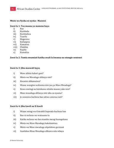 مرکز مطالعات آفریقایی دانشگاه بوستون، 2013. – 2 ص. (تمرین ها) + فیلم: 580×360، 9 دقیقه.