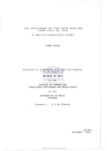 عنوان اصلی The Afrikaans of the Cape Muslims from 1815 to 1915: a socio-linguistic study