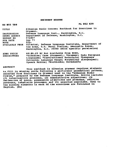 عنوان اصلی Albanian Basic Course: Workbook for Exercises in Grammar