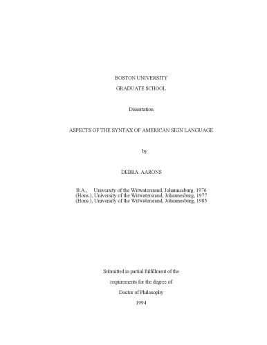 عنوان اصلی Aspects of the Syntax of American Sign Language