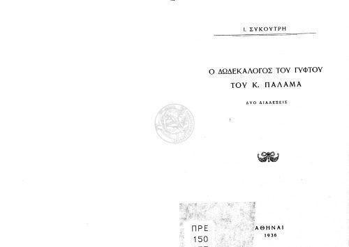 | عنوان اصلی | Ο Δωδεκάλογος του γύφτου του Κ. Παλαμά -Δύο διαλέξεις Ι. Συκουτρή |