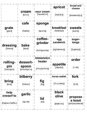 کارت هایی برای حفظ کلمات انگلیسی با موضوع: غذا (با رونویسی)