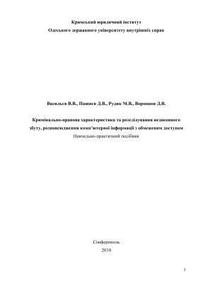 | عنوان اصلی | Кримінально-правова характеристика та розслідування незаконного збуту, розповсюдження комп’ютерної інформації з обмеженим доступом |