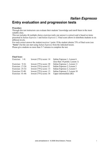 عنوان اصلی Дополнительные упражнения с ключами к курсу Italian Espresso 1