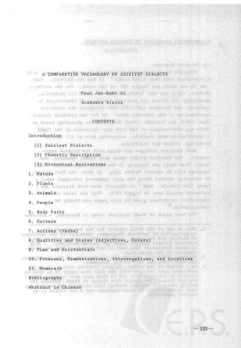 | عنوان اصلی | A Comparative Vocabulary of Saisiyat Dialects |