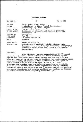 | عنوان اصلی | A Dictionary of Hindi Verbal Expressions |