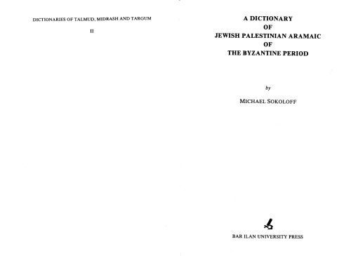 | عنوان اصلی | A dictionary of Jewish Palestinian Aramaic of the Byzantine period (Dictionaries of Talmud, Midrash, and Targum) |