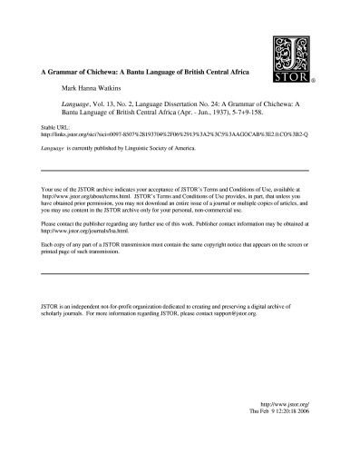 عنوان اصلی A grammar of Chichewa, a Bantu language of British Central Africa