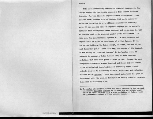 این یک کتاب درسی مقدماتی زبان ژاپنی کلاسیک برای دانش‌آموزان خارجی است که قبلاً به زبان ژاپنی مدرن تسلط کافی دارند. اصطلاح ژاپنی کلاسیک خود مبهم است: می تواند به معنای سبک نوشتاری رسمی ژاپنی باشد که قبل از اشغال برای نوشتن اسناد رسمی و آثار علمی رایج بود. این می تواند به معنای هر سبکی از زبان ژاپنی باشد که اساساً با ژاپنی گفتاری معاصر متفاوت است. و می تواند به معنای نوع ژاپنی مورد استفاده در نثر و شعر دوره هیان باشد. در این متن، اصطلاح ژاپنی کلاسیک مبهم باقی خواهد ماند و بر دستور زبان ژاپنی نوشتاری در تمام دوره‌های پس از هیان، البته به جز دوره پس از اشغال، تأکید می‌شود. یعنی هدف این کتاب درسی تسلط بر «ژاپنی کلاسیک» به معنای وسیع‌تر است. این دستور زبان ژاپنی هیان را با انحرافات مهمتری که در دوره های بعدی رخ داده است، نشان می دهد. از آنجایی که بارزترین تفاوت بین ژاپنی کلاسیک و مدرن در ویژگی های صرفی کلمات عطف کننده وجود دارد، بیشترین تأکید بر تسلط بر افعال، صفت ها و پسوندهای عطف به نام Zyodoosi است. هنگامی که دانش آموز این بخش از دستور زبان را به خوبی درک کند، مشکلات پیش روی او در خواندن متون کلاسیک ژاپنی نسبتاً جزئی خواهد بود.