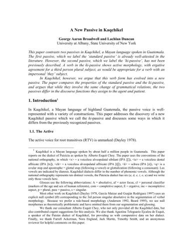 | عنوان اصلی | A New Passive in Kaqchikel |