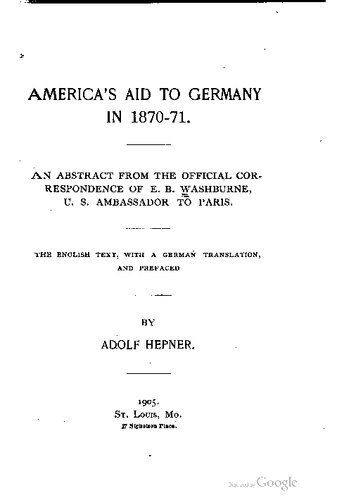 کمک آمریکا به آلمان در 1870-1871; چکیده ای از مکاتبات رسمی E. B. Washburne، سفیر ایالات متحده در پاریس |
