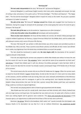 تحلیل سبکی دقیق از متن “Mr Know-All” سامرست موام. 3 ص